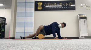 そのまま、ポールを転がすようにももの外側をほぐしていきます。