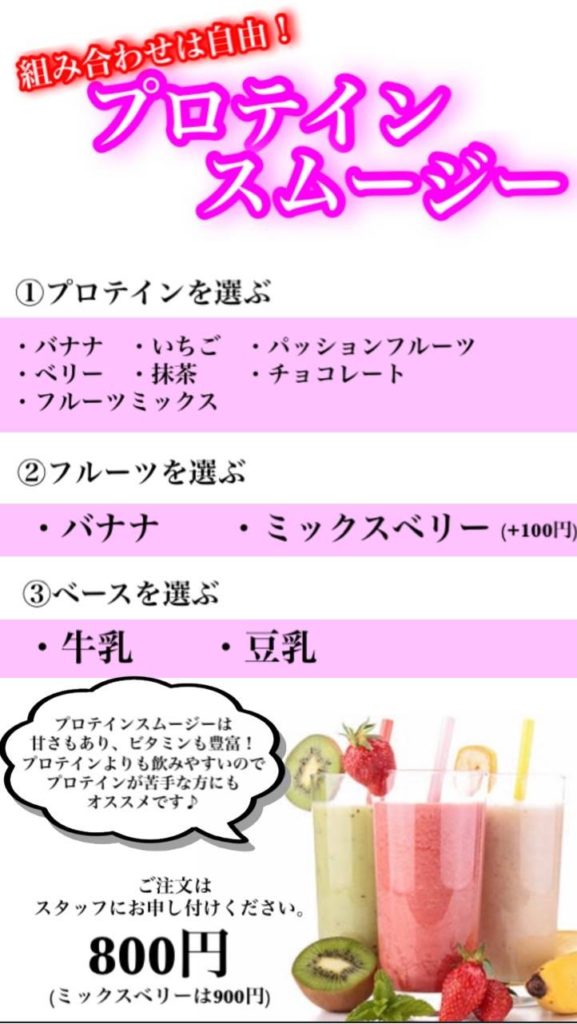 11/1より、くびれサーキットでは期間限定のプロテインスムージーの販売をスタートしました!