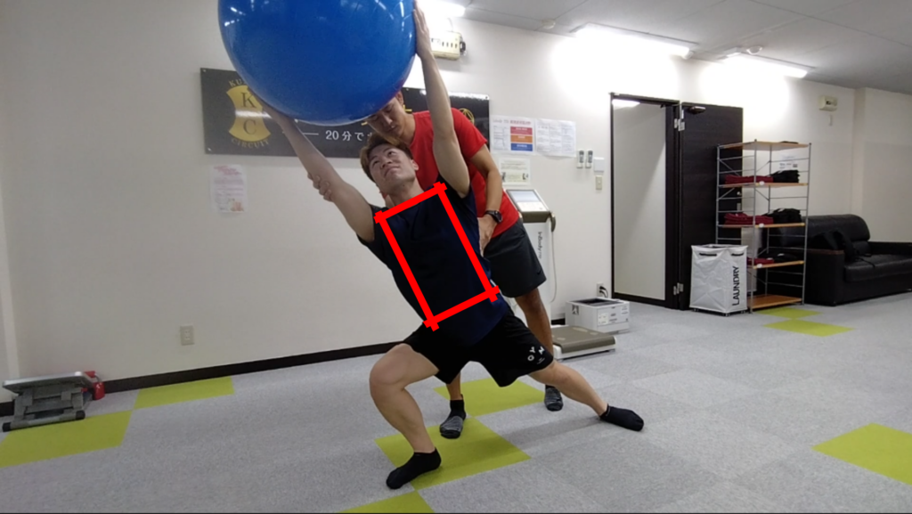 腰痛&肩こり改善のクラスで行われる、サイドランジ+バランスボール挙上のトレーニングですが、このトレーニングは注意点がたっぷり。