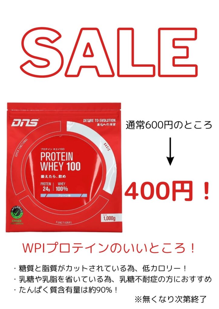 今月キャンペーンをしていた抹茶プロテインの半額キャンペーンが予想以上に好評で、早期完売をしてしまいましたので、急きょ、新たにWPIプロテインのプレーン風味を割引価格で提供することに決まりました。